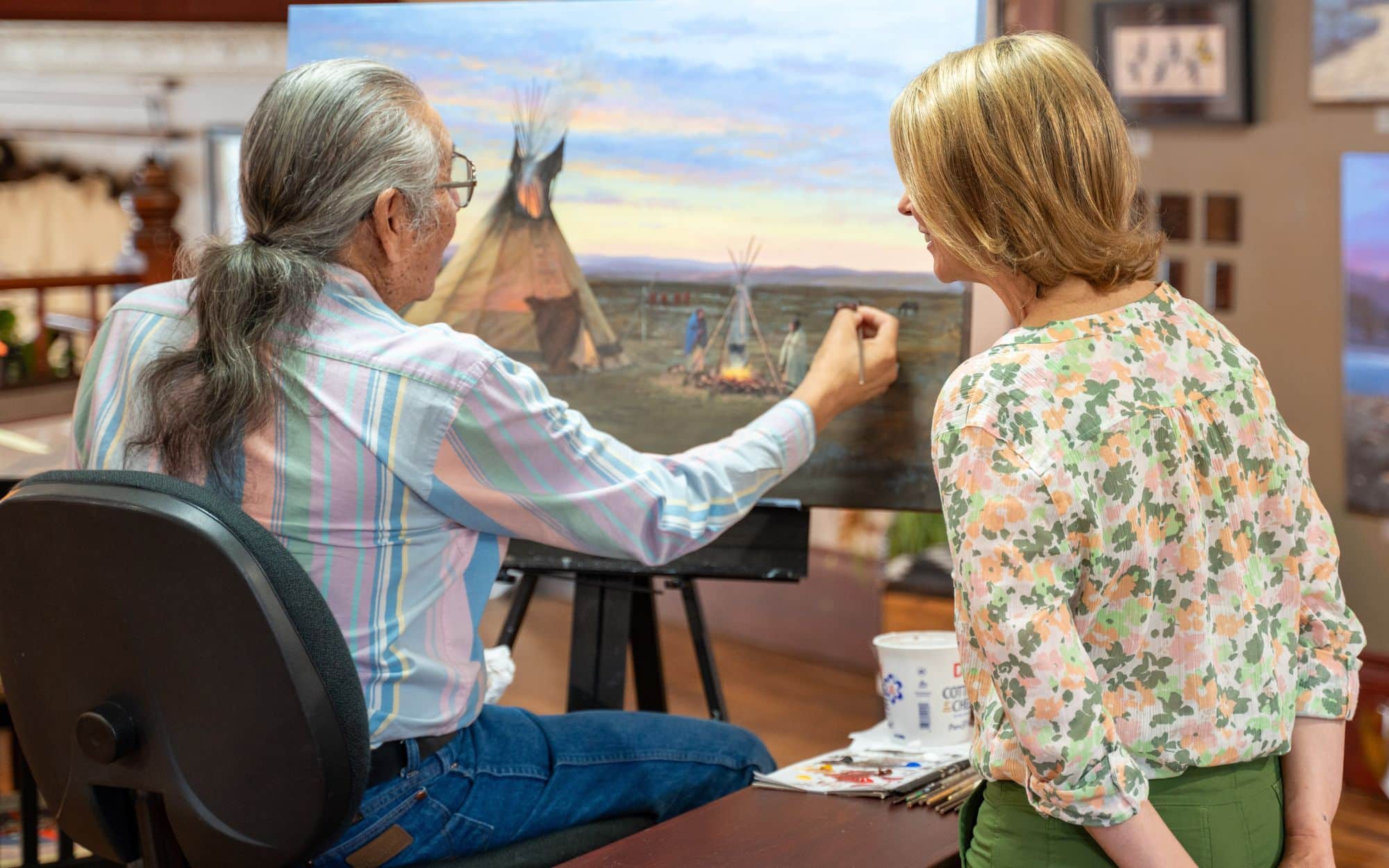 Check out art by Del Iron Cloud. I had a chance to meet this Lakota painter and learn more about his creative process. I love that he finishes all his signature with a peace pipe!